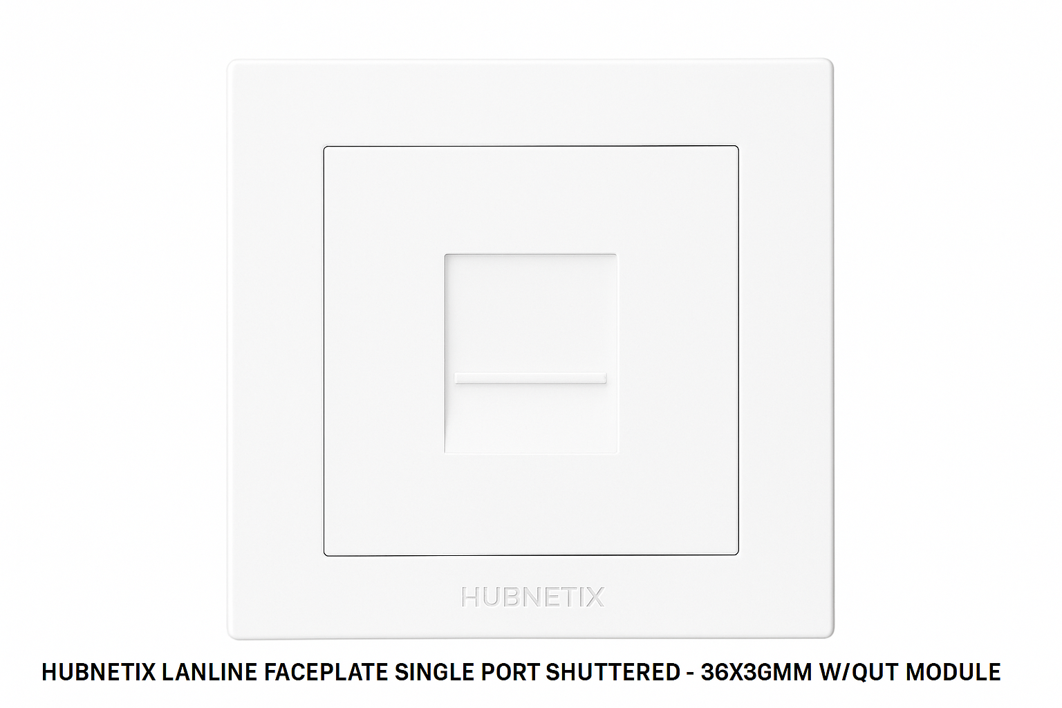 - HUBNETIX LANLINE FACEPLATE SINGLE PORT SHUTTERED-86X86MM W/OUT MODULE-WHITE HUBNETIX LANLINE FACEPLATE SINGLE PORT SHUTTERED-86X86MM W/OUT MODULE-WHITE